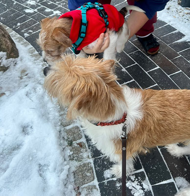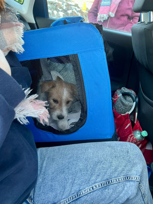 Bumblebee durfte gestern zusammen mit Schwesterlein Bailey noch einen Ausflug machen ins Dorf und zum Weihnachtsbaum gucken – nun ist sie bereit für ihr Leben mit Sandra und Richard, auf