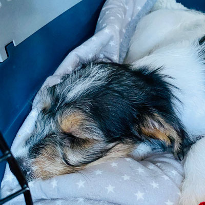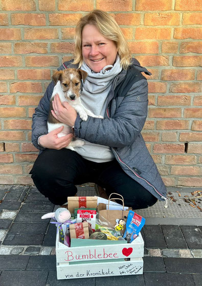 Optisch erinnert uns die kleine Bumblebee stark an unsere unvergleichliche Flocke als Welpe – da fließen schon auch Tränen der Rührung bei uns, wie überhaupt beim Auszug aller