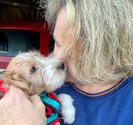 Wir lassen alle schwerzen Herzens ziehen, wissend aber auch, wir haben die richtigen Familien gefunden. Und das tröstet und macht Freude auf die kommende Zeit, in der wir unsere Welpen beim
